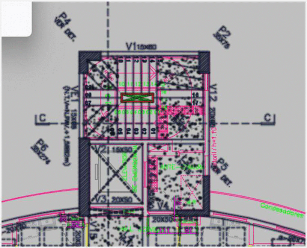 5. Representação de área de fechamento divergente em planta Estrutura (viga existente) e Arquitetura. Será vazio? Terá cobertura em cada pavimento?